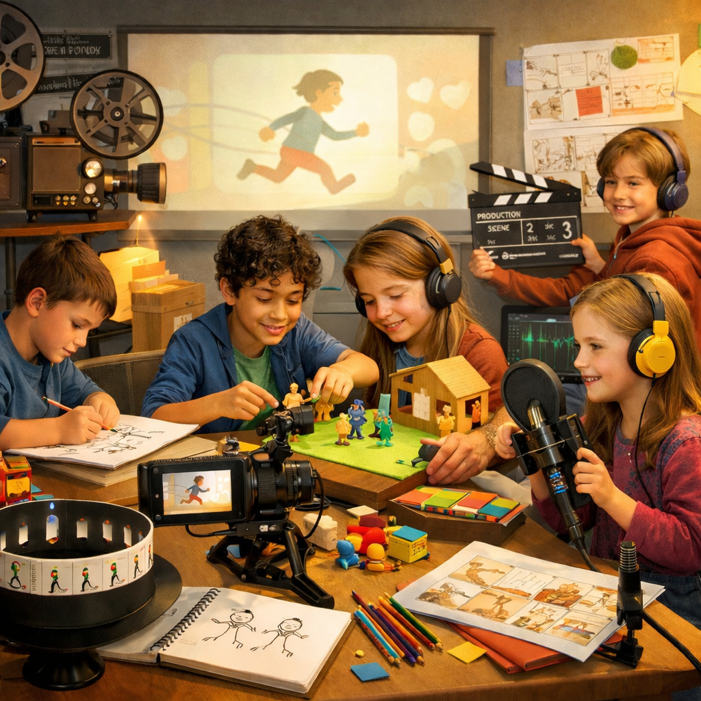 Um projeto educativo onde crianças e jovens exploram o desenho, o som e o movimento através de oficinas práticas inspiradas no cinema de animação.